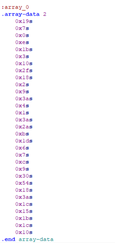 | str1 = [ 57, 59, 49, 15, 62, 48, 39, 19, 1, 125, 112, 112, 3, 125, 56, 14, 122, 35, 124, 11, 26, 60, 125, 57, 127, 60, 77, 77, 77, 41]