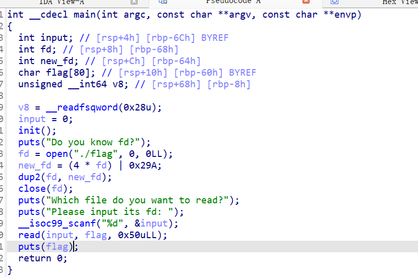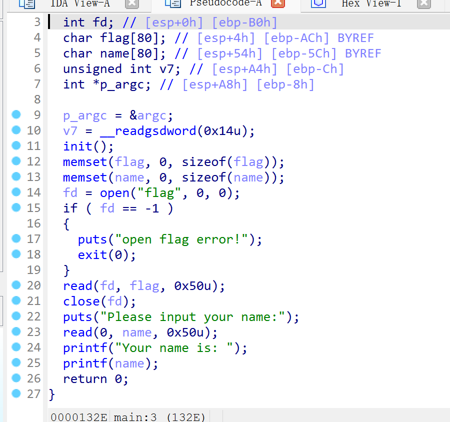 打开flag文件写到了栈上,那就把栈里面的东西全部泄露出来