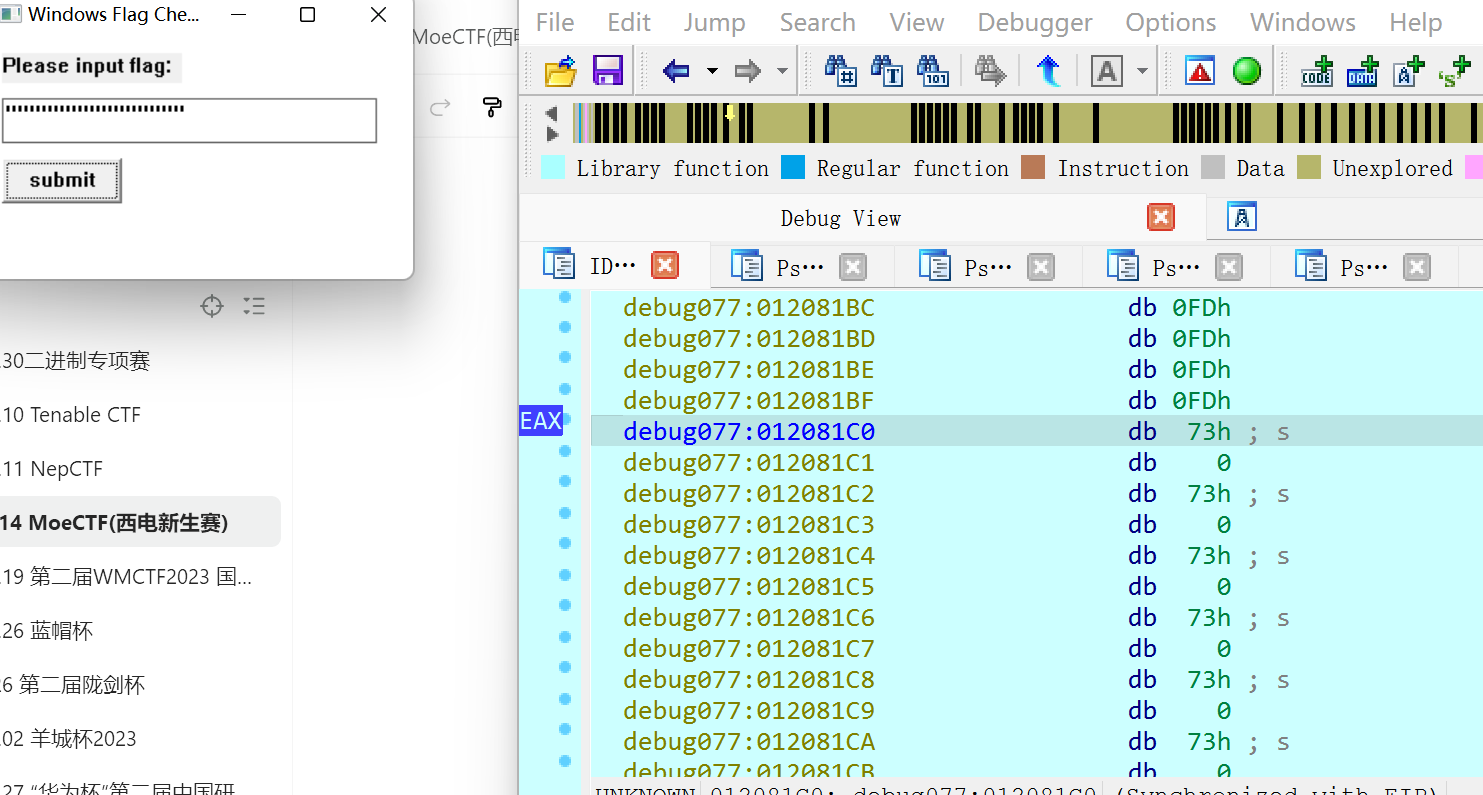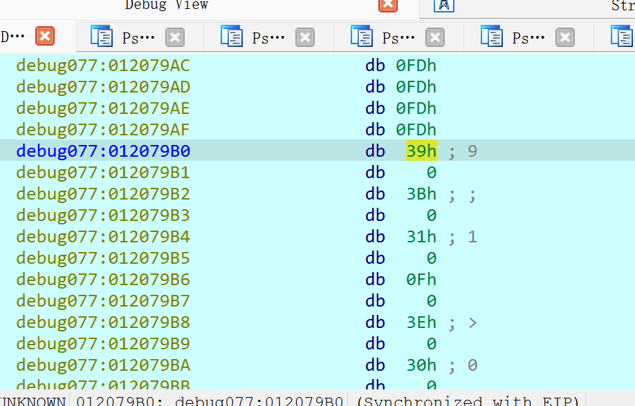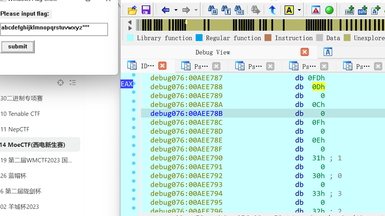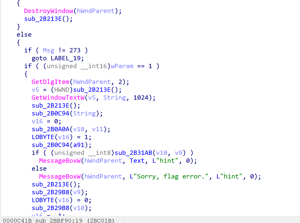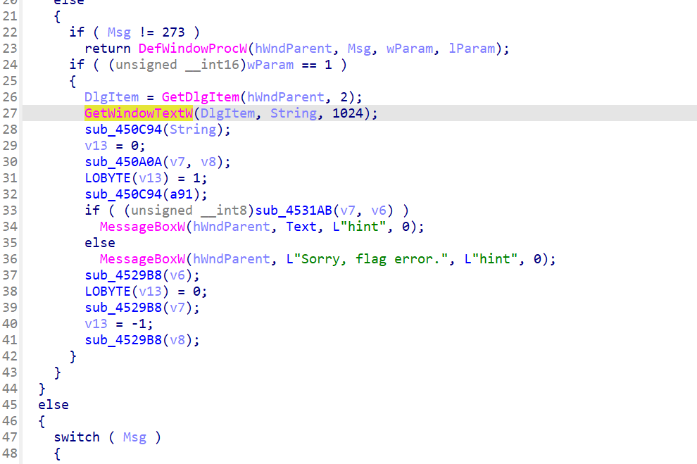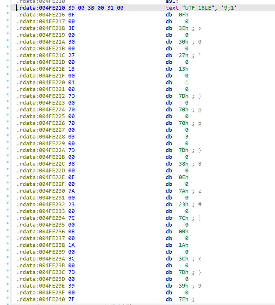 观察到这里有WORD*和上⾯的GetWindowTextW,可以猜测是Unicode存储的数据