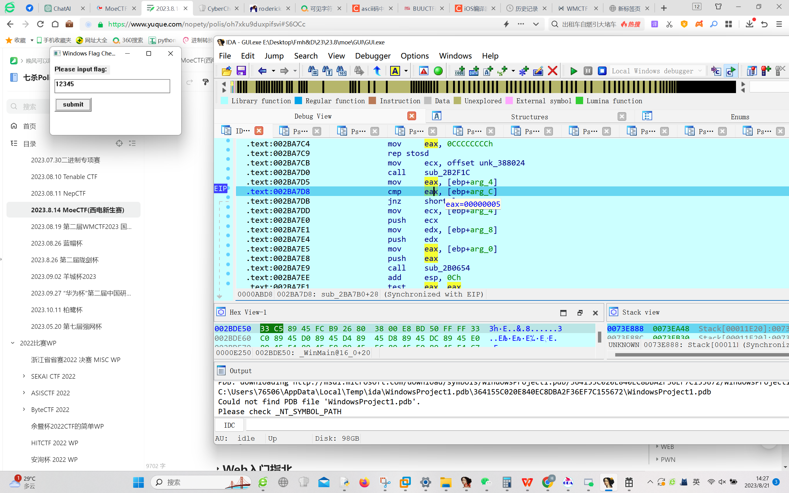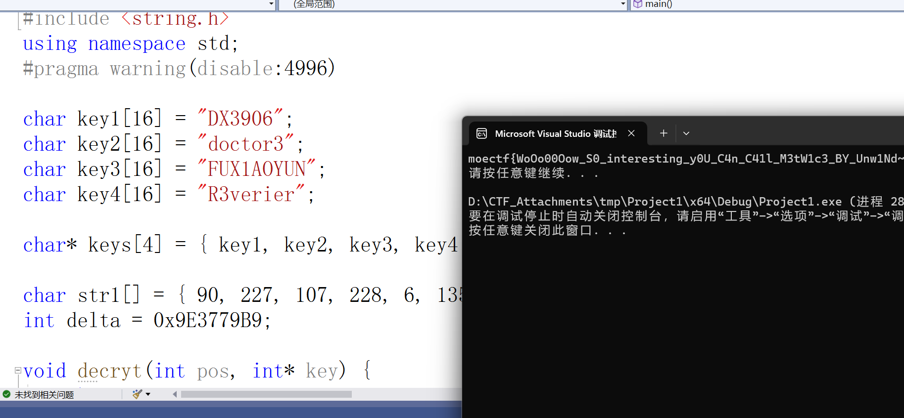 先脱壳,找到main(先双击字符串,再交叉应用,再tab)
