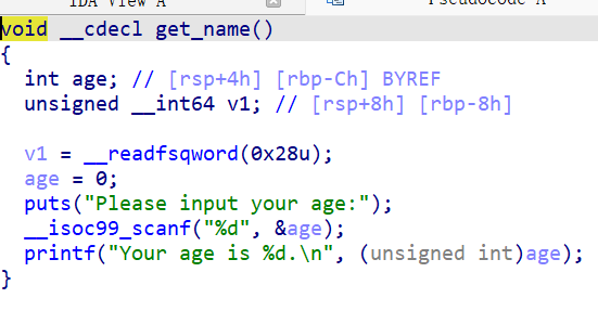 调试发现age和key都先存到rdi,直接看ebp也是都减8h