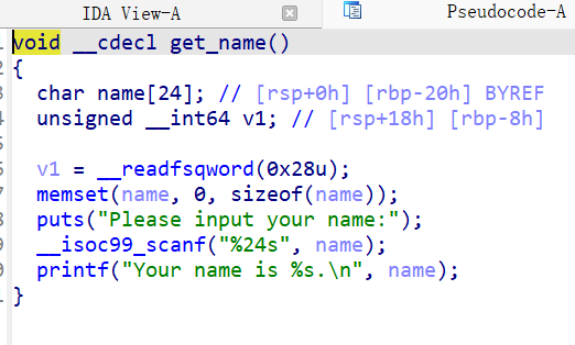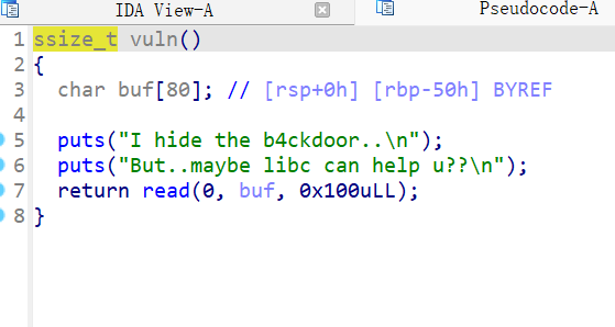 def s(a): p.send(a) def sa(a, b): p.sendafter(a, b) def sl(a): p.sendline(a) def sla(a, b): p.sendlineafter(a, b) def r(): return p.recv() def pr(): print(p.recv()) def rl(a): return p.recvuntil(a) def inter(): p.interactive() def get_addr(): return u64(p.recvuntil(b'\x7f')[-6:].ljust(8, b'\x00'))