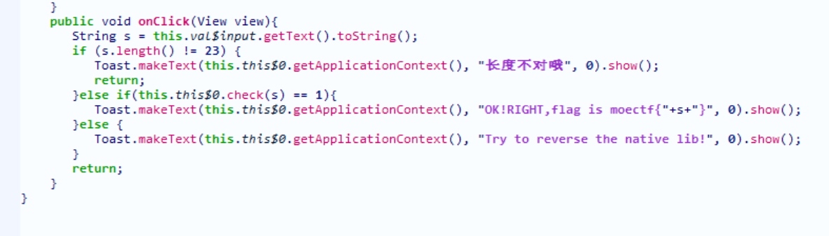 public native 修饰check,native层逆向