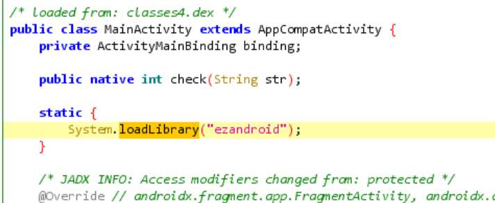loadLibrary加载so库,具体实现在ezandroid