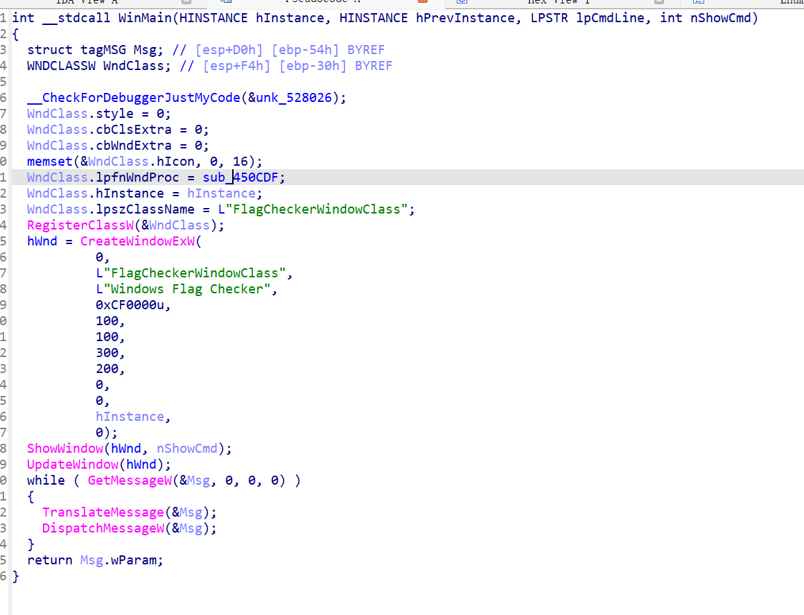 lpfnWndProc是一个指向窗口过程函数的指针,说明是主要流程