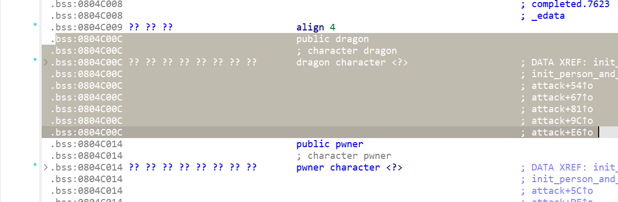 为了打败龙我们可以将龙的血量和攻击都修改为0。找到龙的地址和结构体的组成