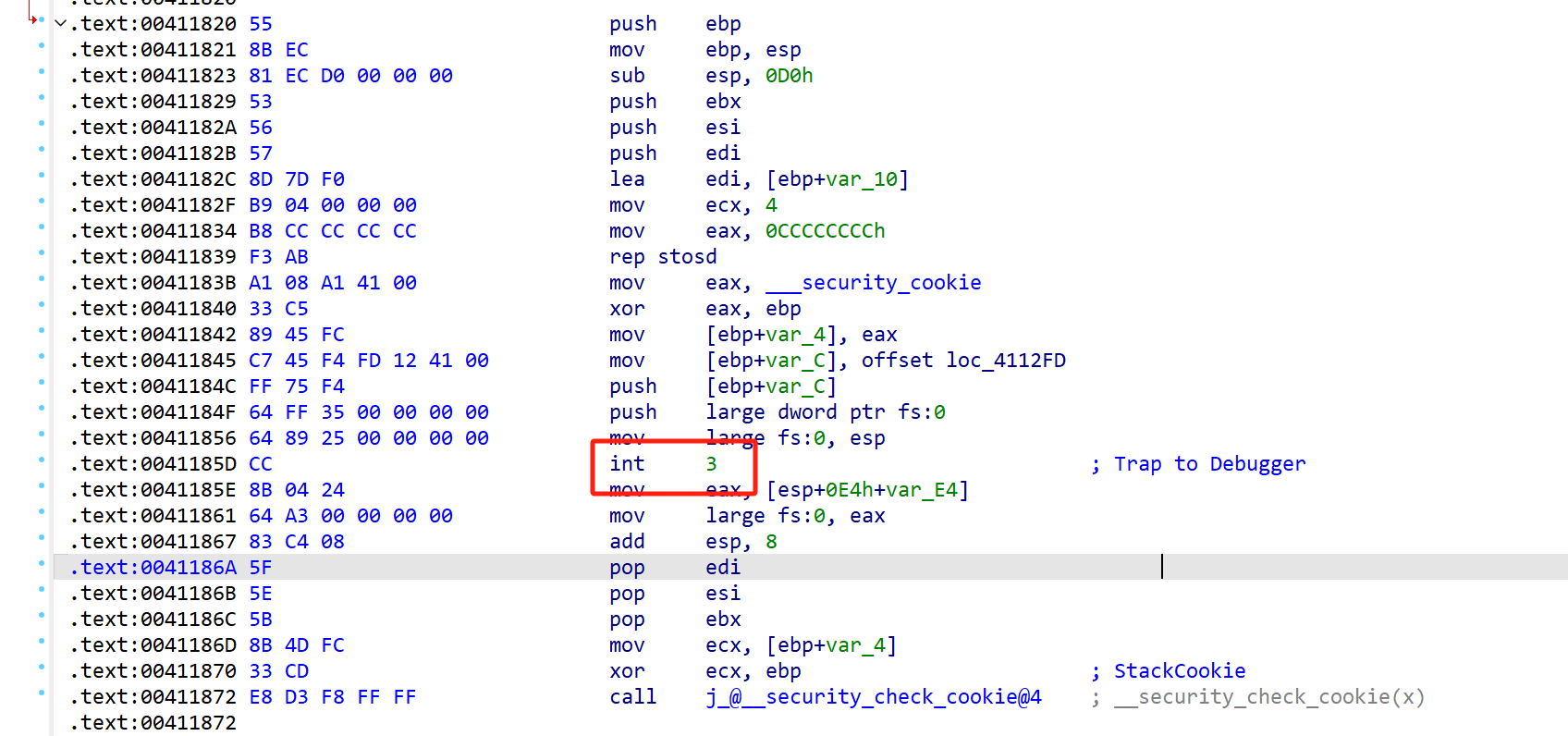 去看有int 3触发调试异常