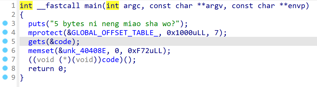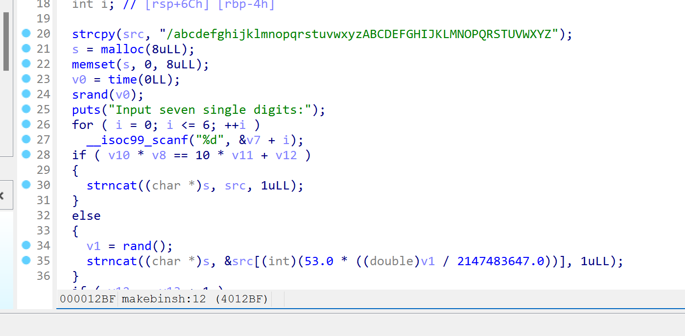 看到函数名和7个数字,应该是要凑出/bin/sh
