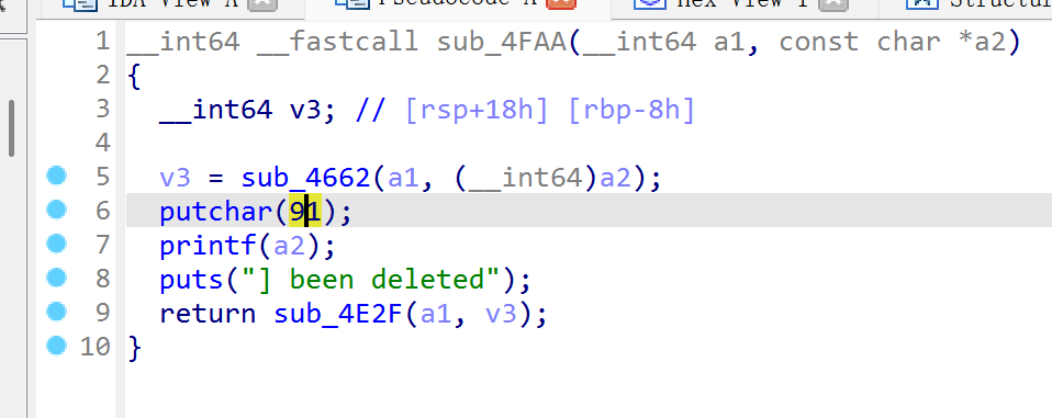 def show(name): p.recvuntil(b'>') p.sendline(b'4') p.recvuntil(b'name') p.sendline(name)