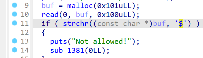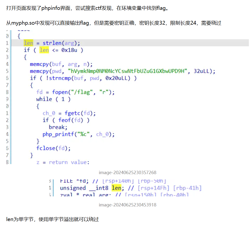 这里会造成单字节溢出,也就是说如果输入的超过0xff,例如0x100将会强制转化成0,这个时候能通过比较,而下面的密码比较只比较0x20,也就能成功绕过
