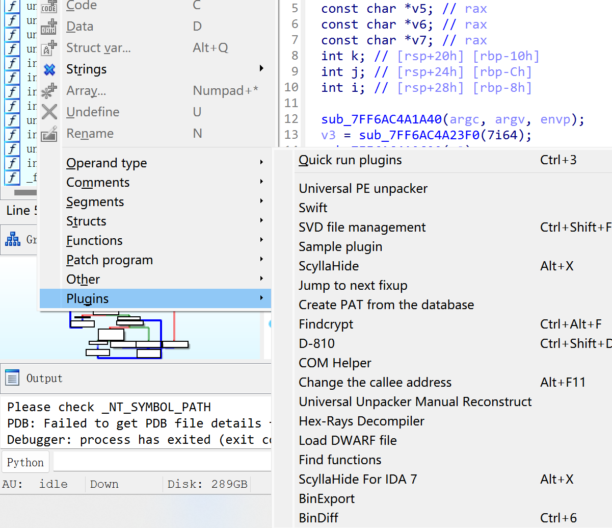 用idapyswitch选择有yara-python的py版本,把findcrypt3.py和findcrypt3.rules放到plugins目录
