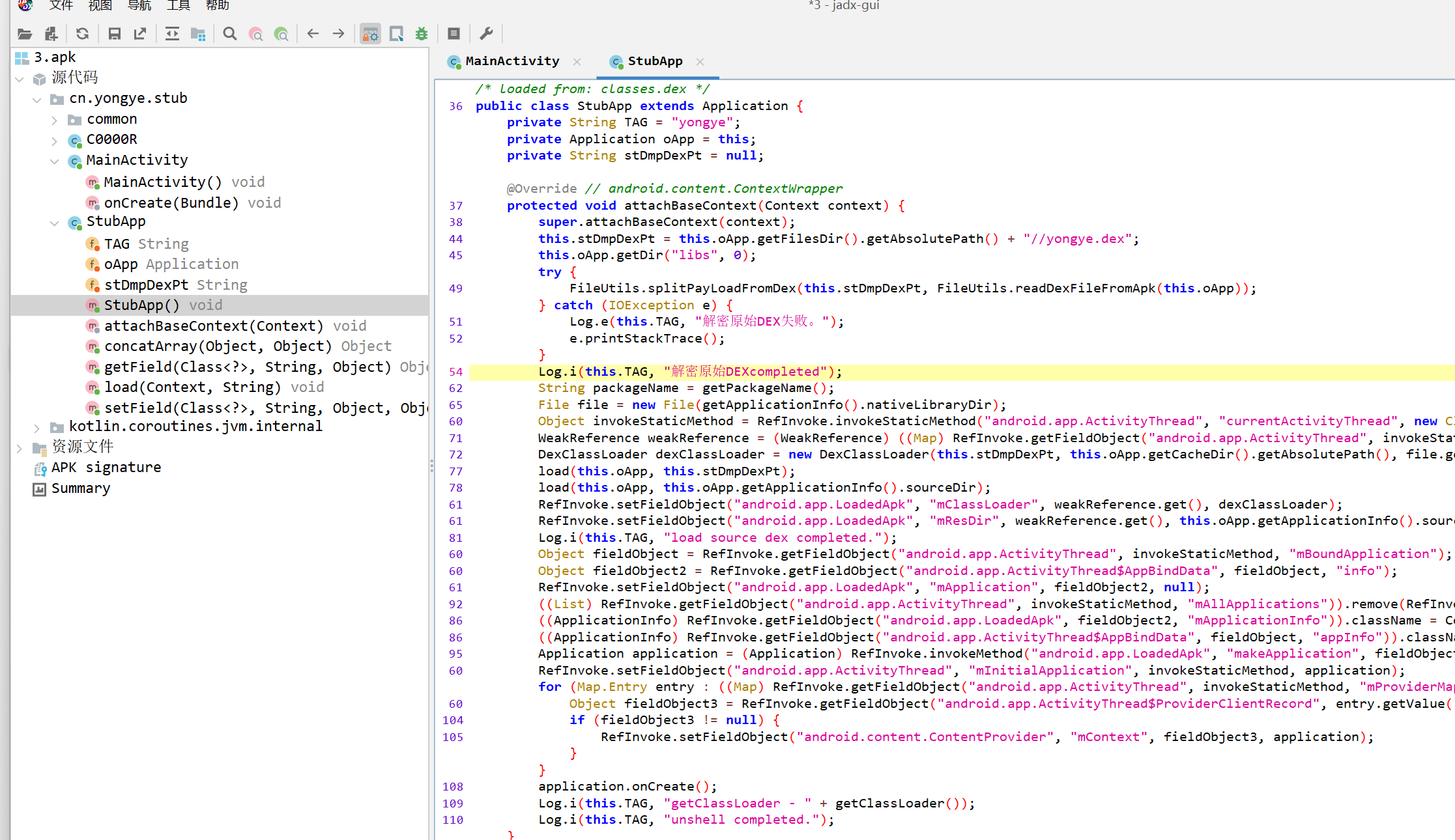 或者运行后可以在 /data/user/0/com.example.wyy/files/yongye.dex 找到释放的 dex