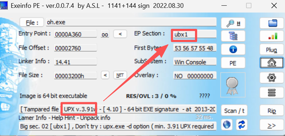 识别为upx壳,但无法直接upx -d