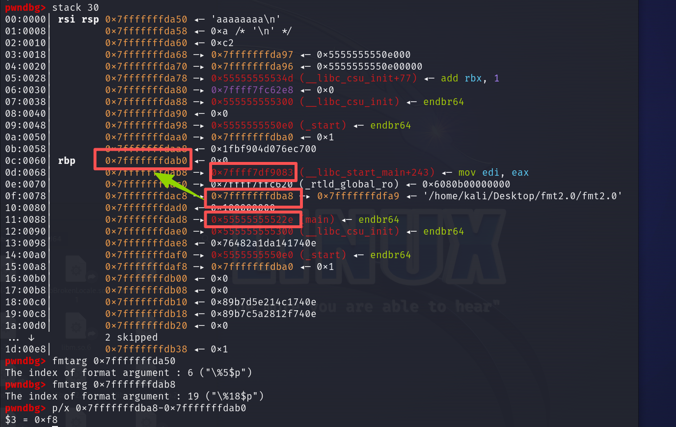 • 确定相对偏移(找格式化字符串中第几个参数)