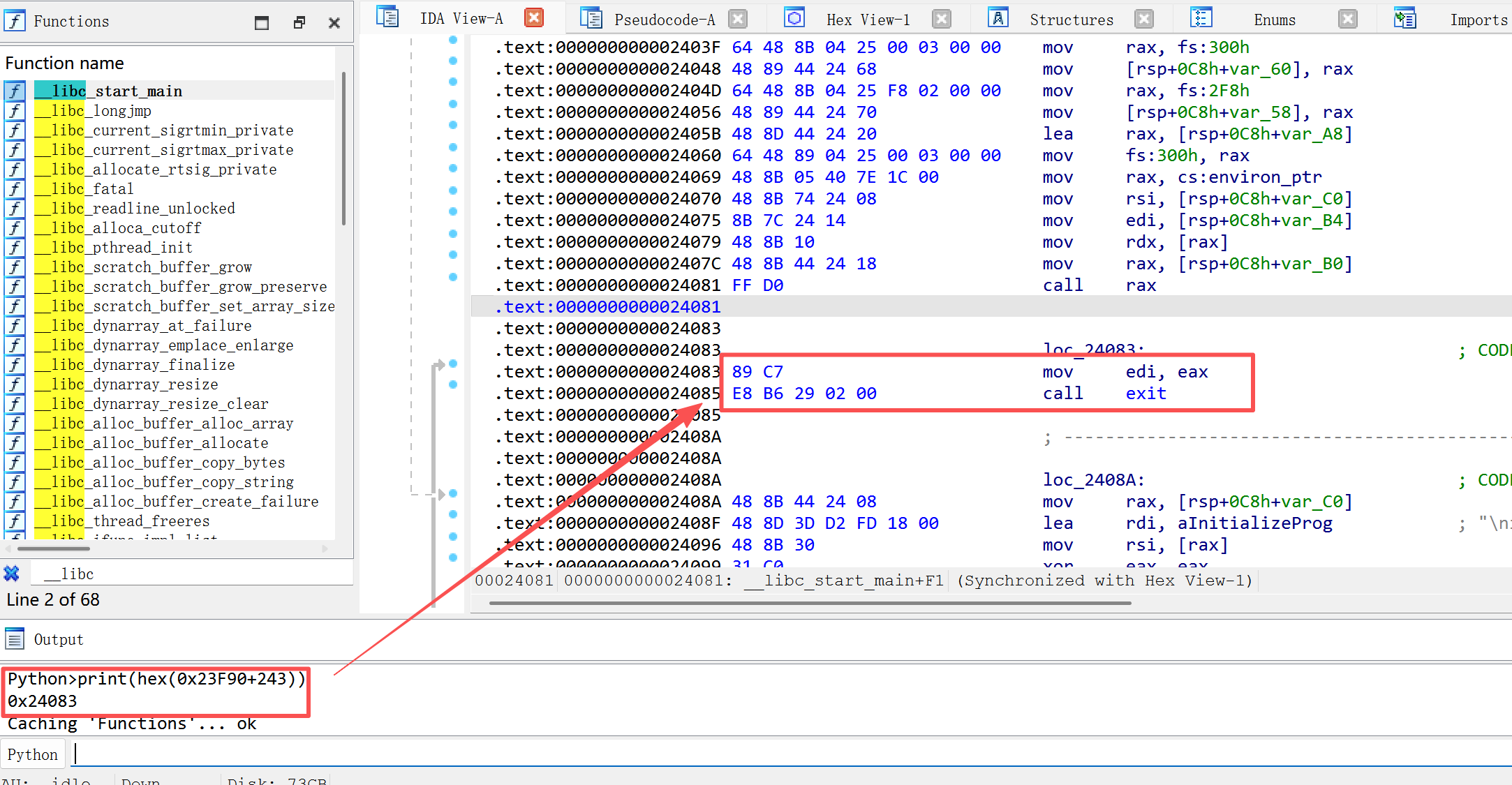 libc减去偏移0x24083