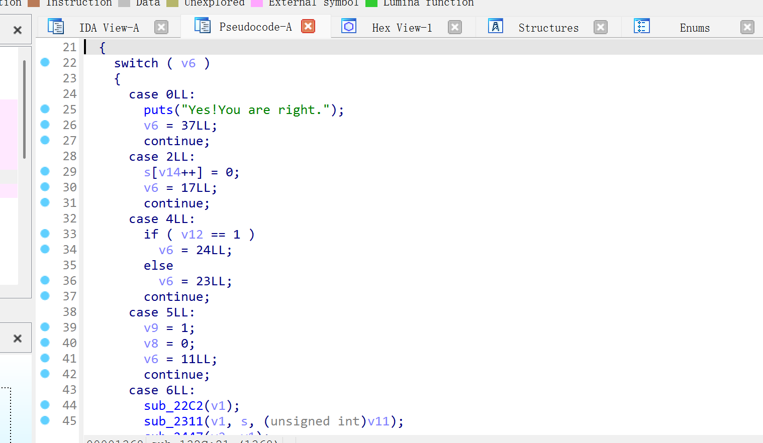 这类变换主要针对 IDA Pro 等反编译工具,使程序的流程逻辑变得极其复杂,难以还原逻辑图